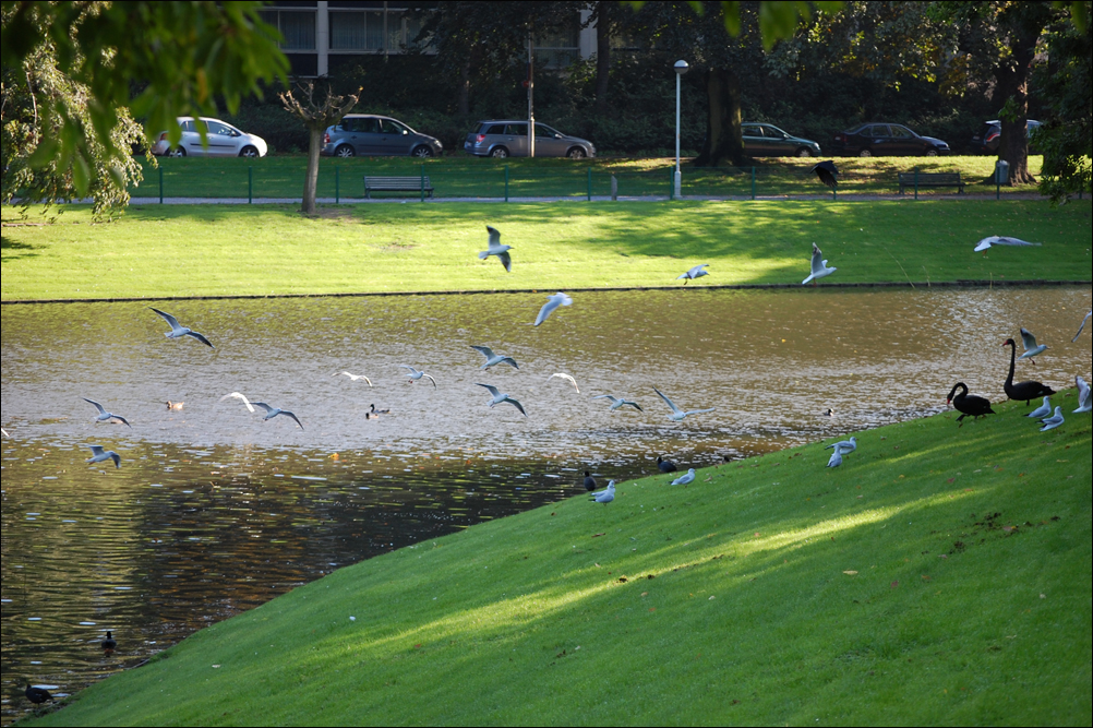 Op een bank in het Park zit een jongen. Hij draagt pak, hemd en das. Het hemd is een maat te groot en de stijve das kan wel van zijn vader zijn. Een zweetdruppel rolt van achter zijn linkeroor tot op de kraag van zijn kraakwitte hemd. Hij zit voorovergebogen, zijn beide ellebogen steunen op zijn knieën en hij kijkt voortdurend op zijn horloge. De jongen heeft papieren in zijn hand. Het eerste blad is een geprint plannetje. Het Park staat er ook op. Maar de bank niet. Op het plannetje heeft iemand met blauwe balpen een groot blauw kruis getekend. Het kruis bevindt zich twee straten verder. Het is een groot kantoorgebouw, twaalf verdiepingen hoog. Ze doen er iets belangrijks, want elke morgen en avond rijden er dure auto’s in en uit de ondergrondse parkeergarage. De rokers aan de ingang van het kantoorgebouw bellen en roken tegelijk. Die van de plantsoendienst, die werken of roken of bellen.